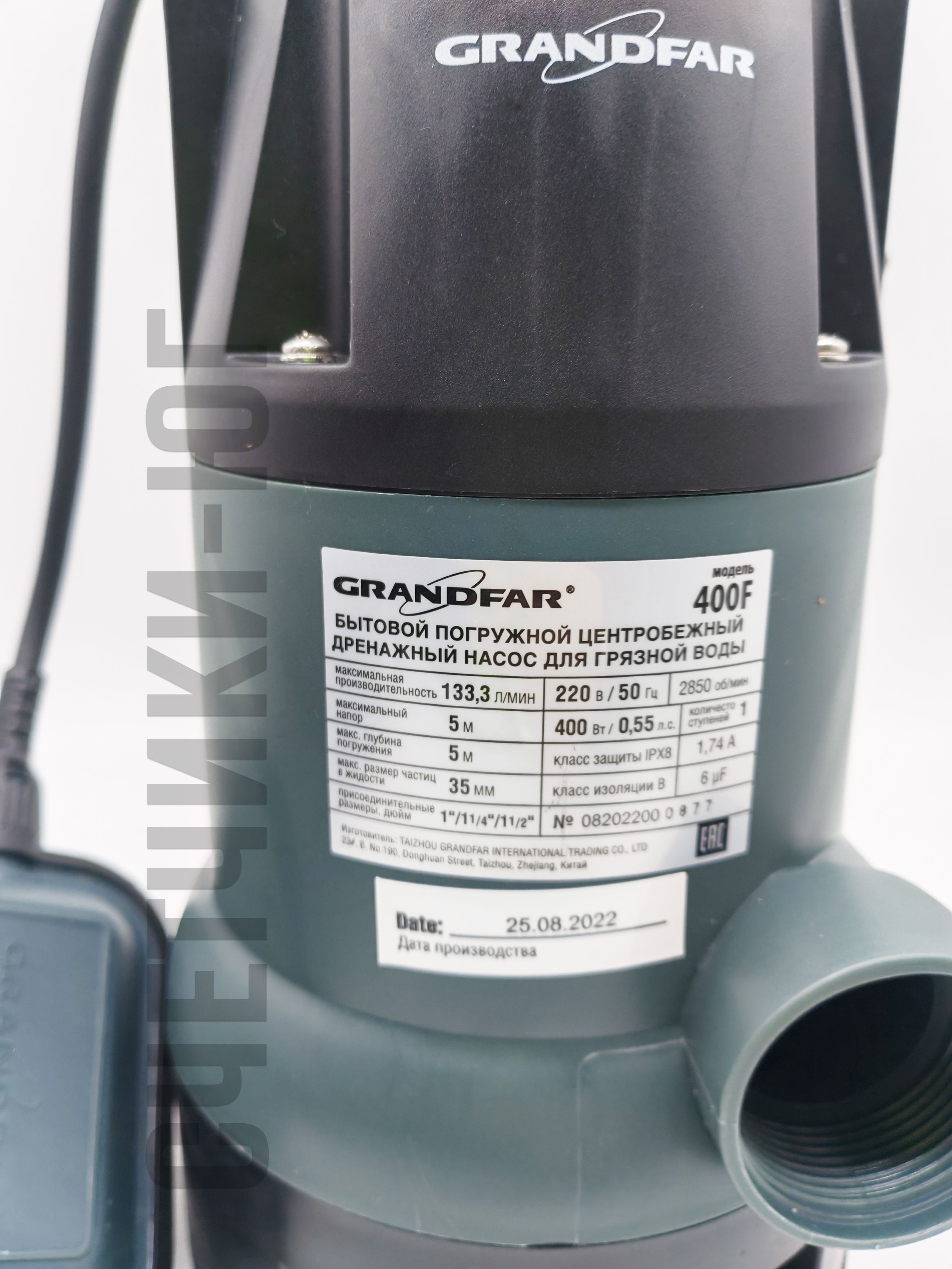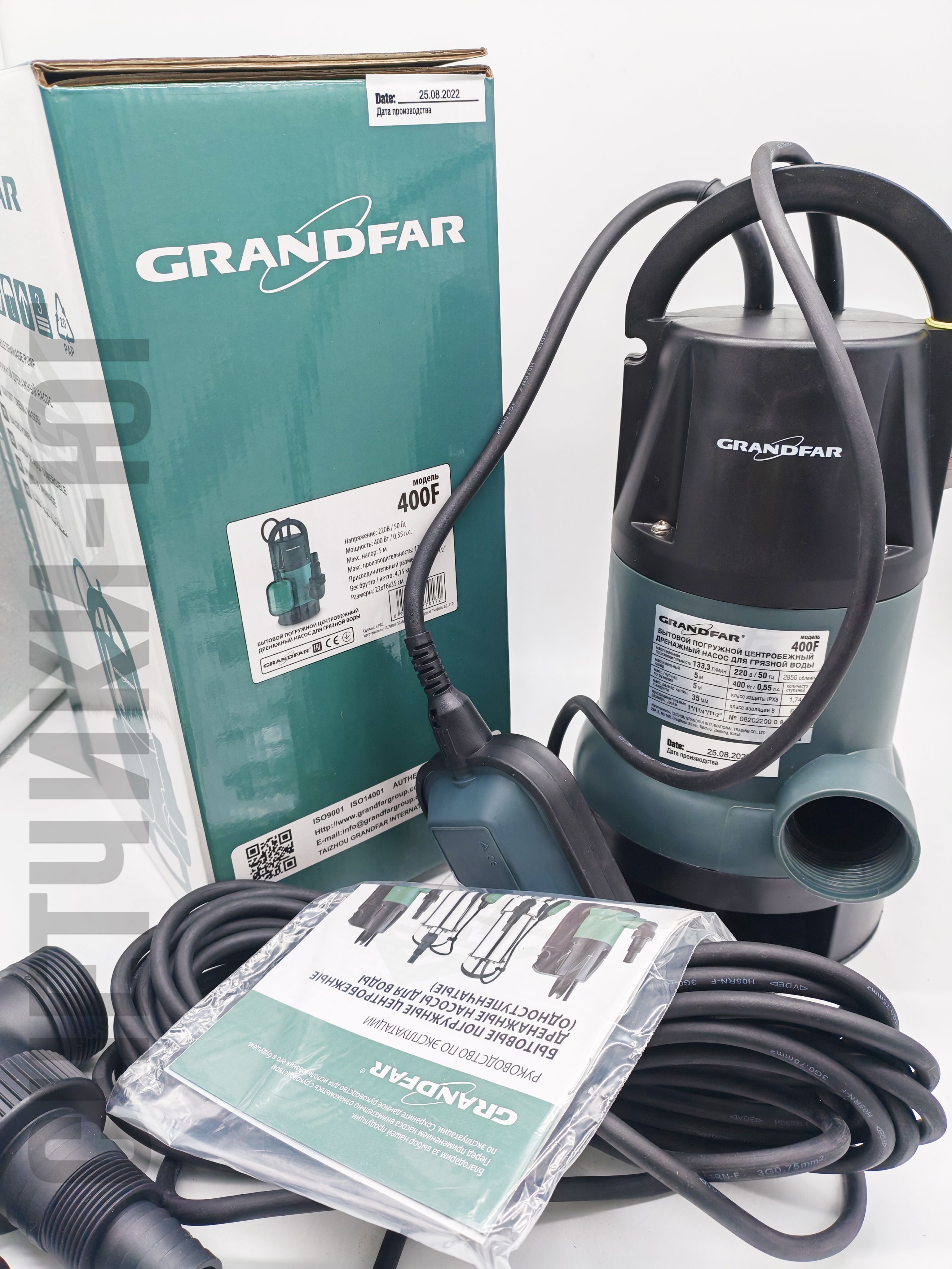 Дренажный насос Grandfar 400 F для грязной воды для откачки воды, дренажа и хозяйственных задач