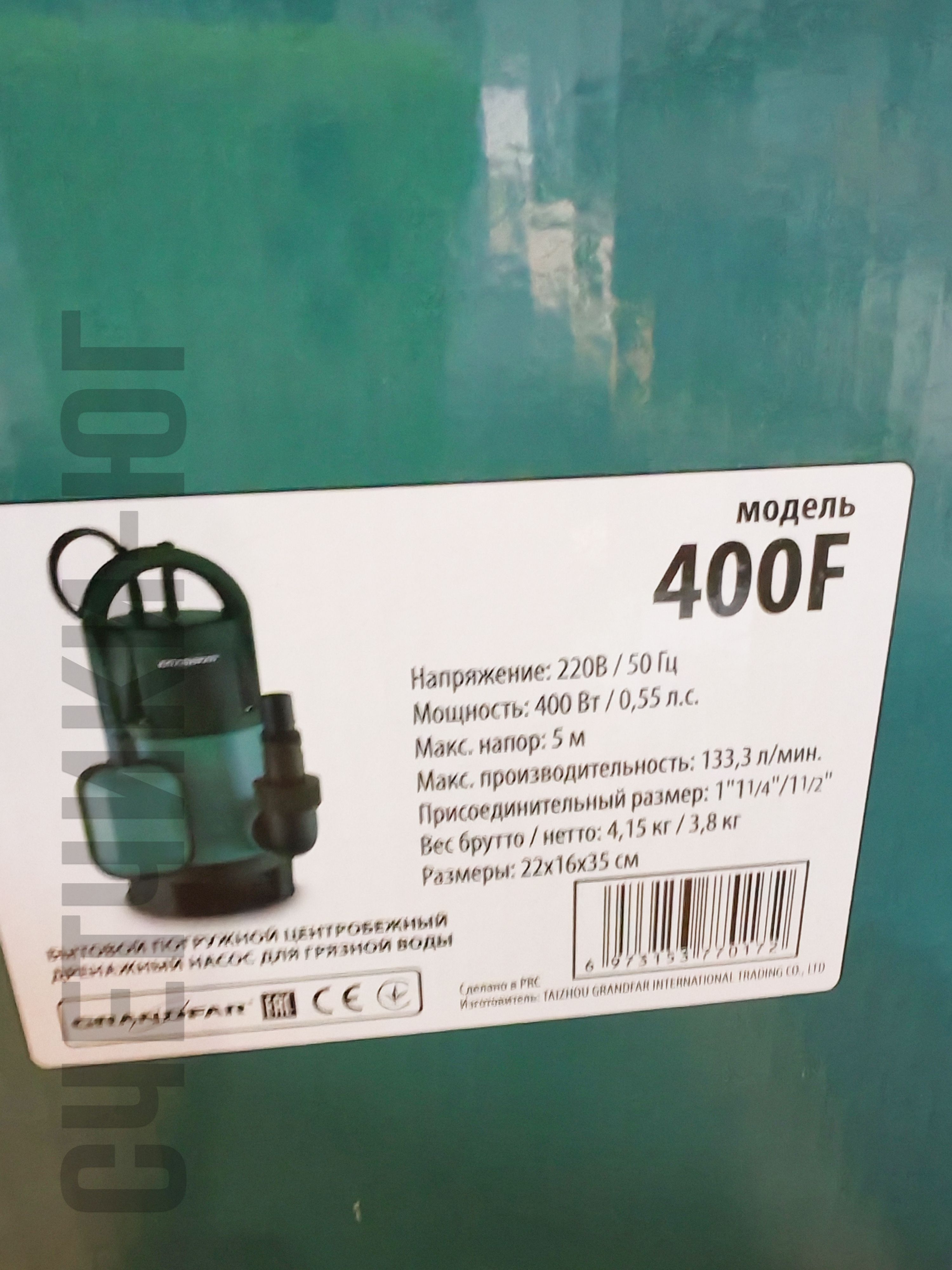 - Перед заказом сверьте мощность 400 Вт, напор 5 м, производительность 133 л/мин.